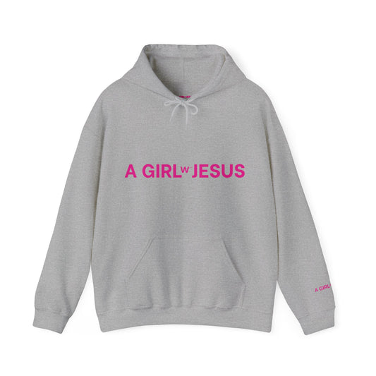 A GIRL w/ JESUS HOODIE PINK LOGO