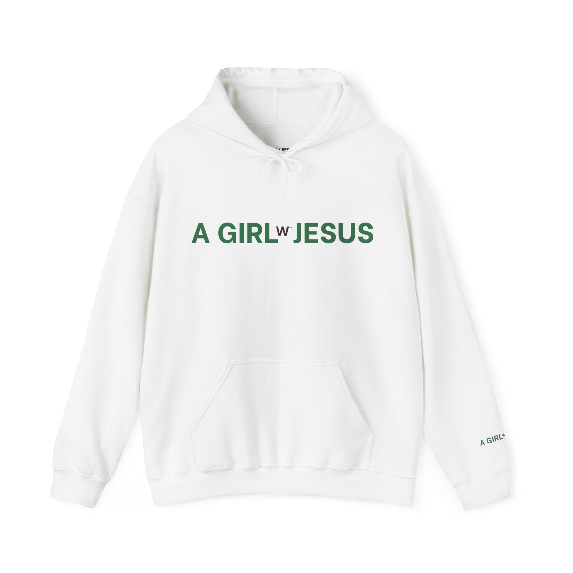 The GWJ hoodie provides volume in the body and sleeves with the intent of creating a soft, round, cropped silhouette. A mock neckline and side seam pockets to provide functionality. A Girl with Jesus logo is sized subtly at the center front, inside collar and left sleeve.